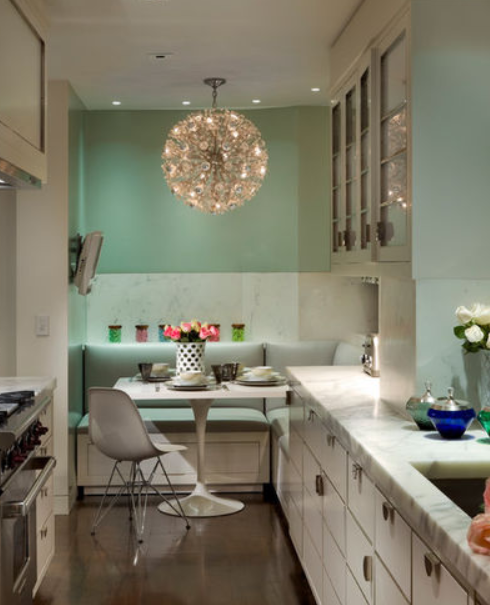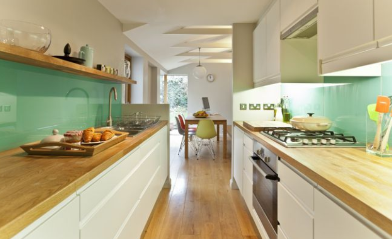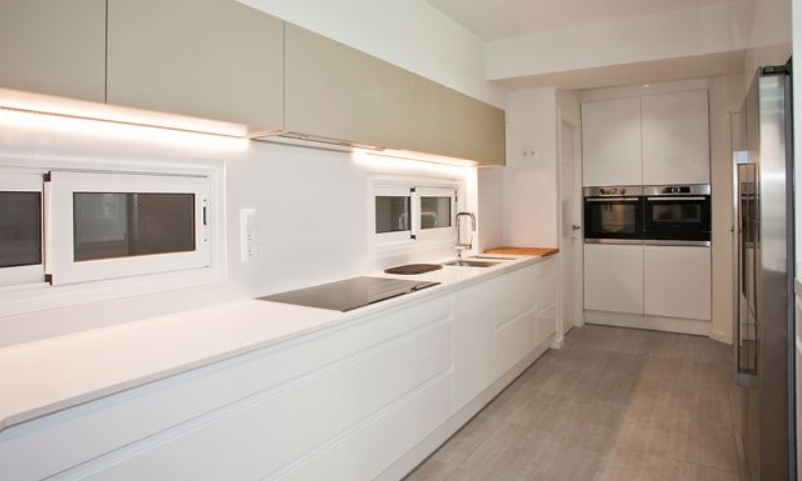 - Evitar en cocinas estrechas colocando armarios altos en las dos paredes, ya que se puede llegar a sobrecargar el espacio.