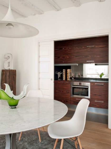 - Abrir un vano hacia el comedor o salón, haciendo uso de un gran ventanal o frentes de puertas correderas que nos independicen totalmente las estancias.